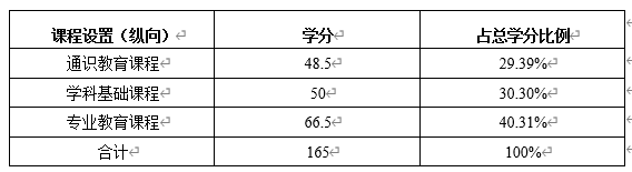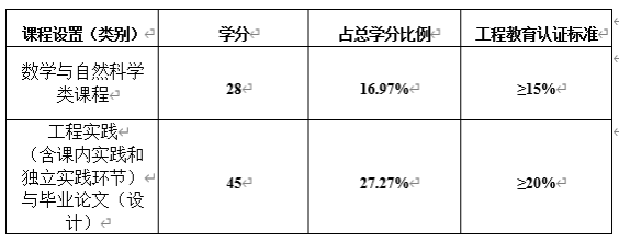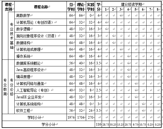计算机科学与技术专业学分设置统计表