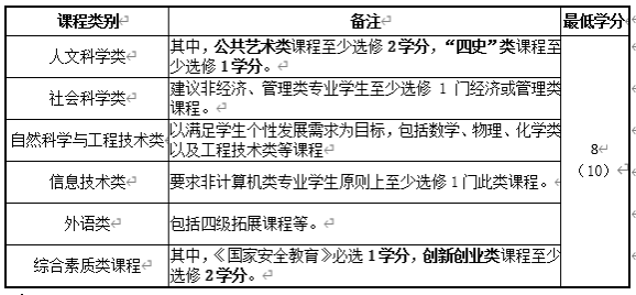 计算机科学与技术专业通识教育选修课程学分要求
