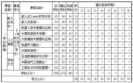 计算机科学与技术专业选修课程设置